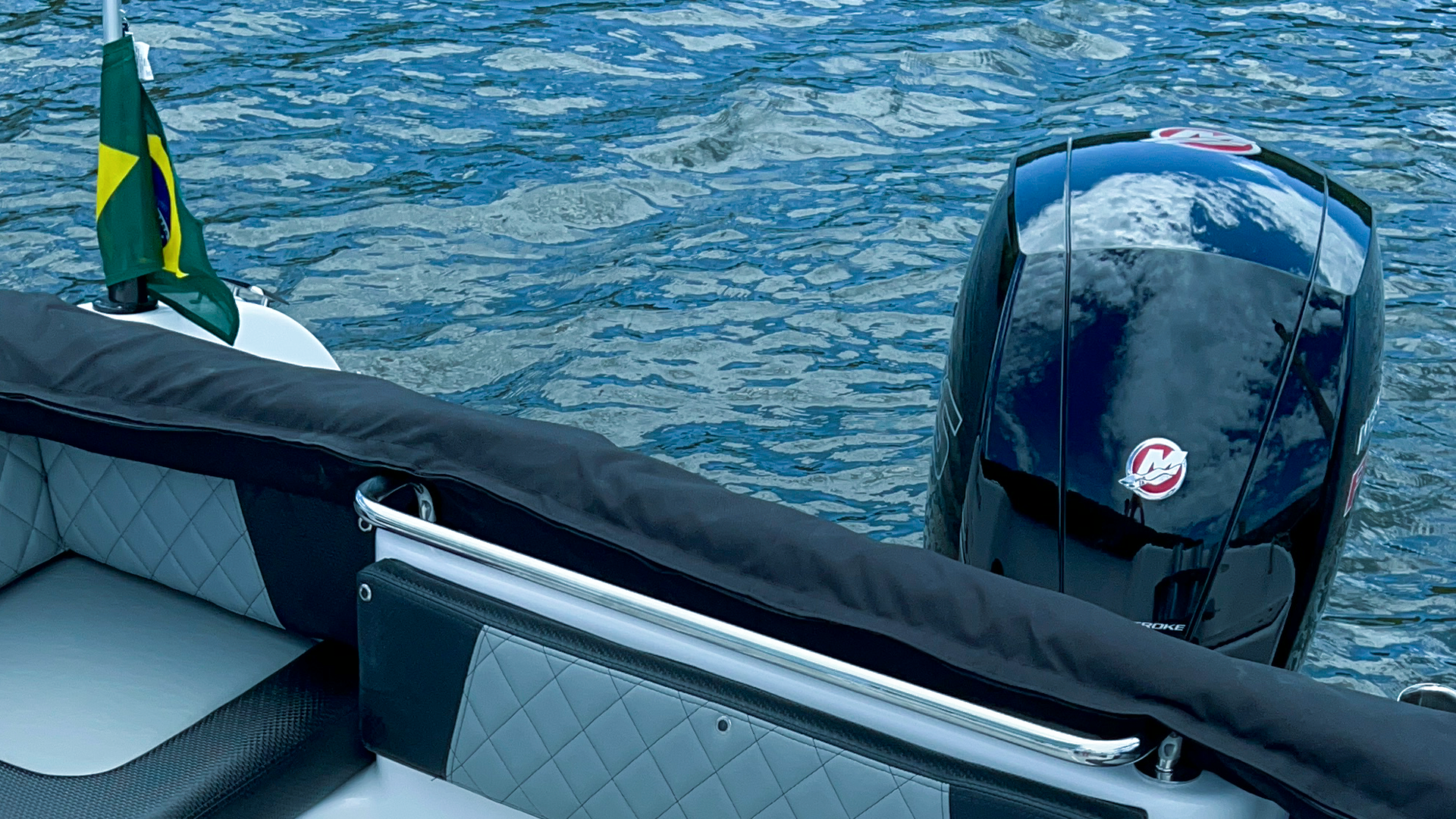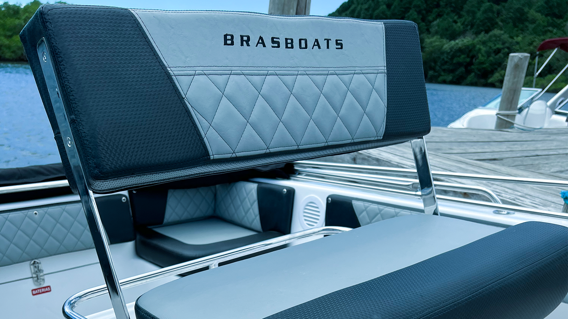 Encosto estofado completo na amurada em courvim anti-mofo e espuma de alta densidade;