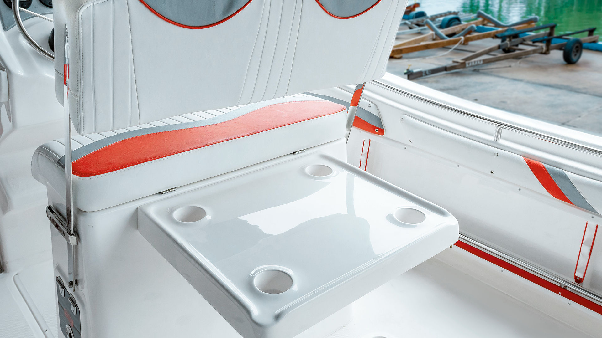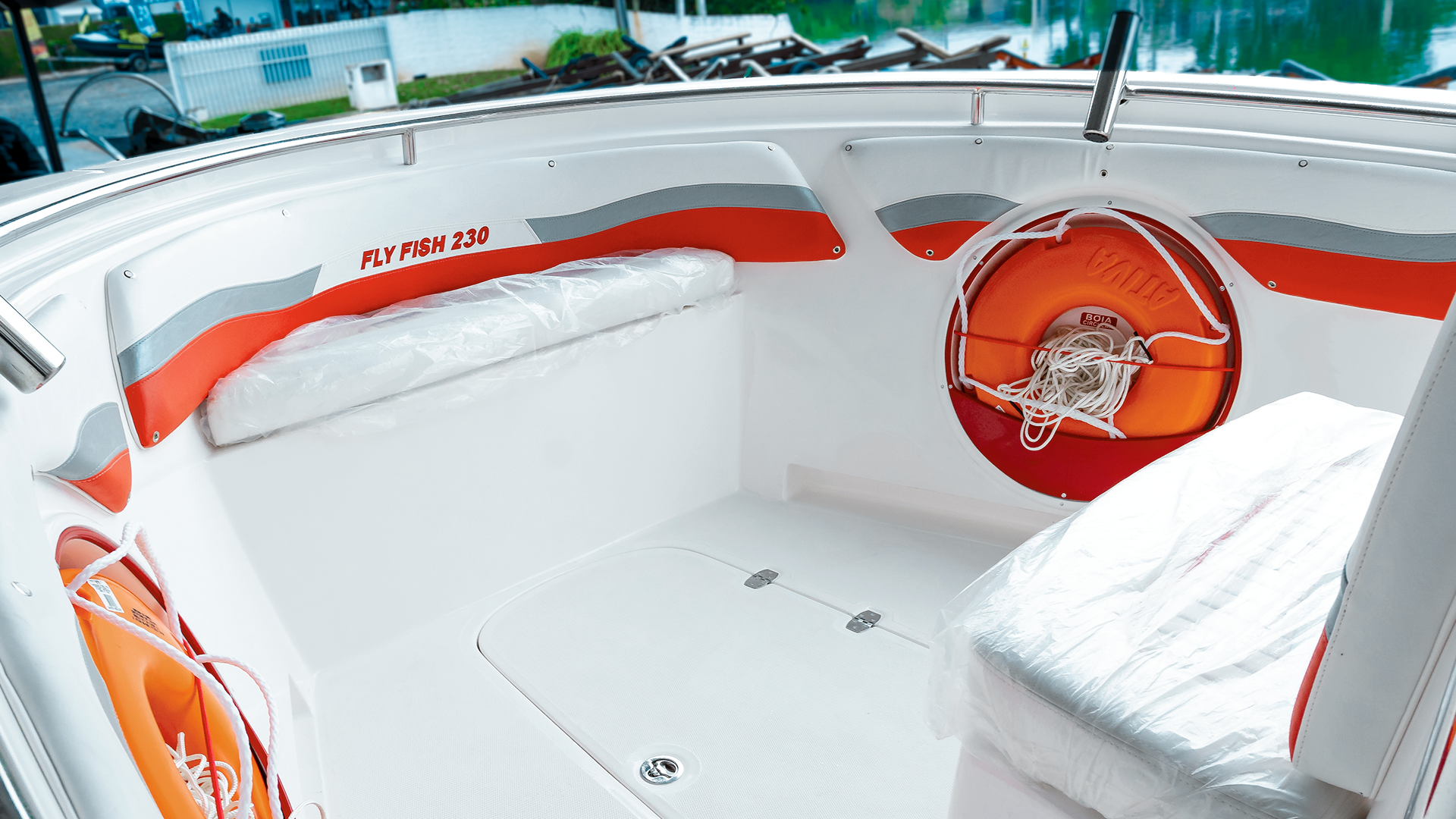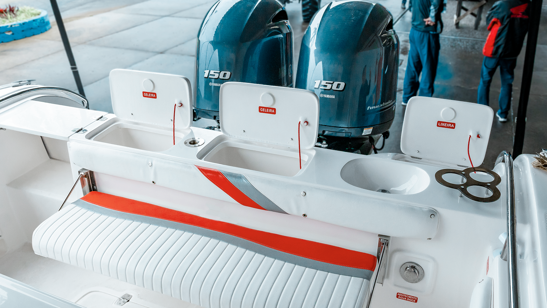 Casco e convés completos laminados pelo sistema monobloco;