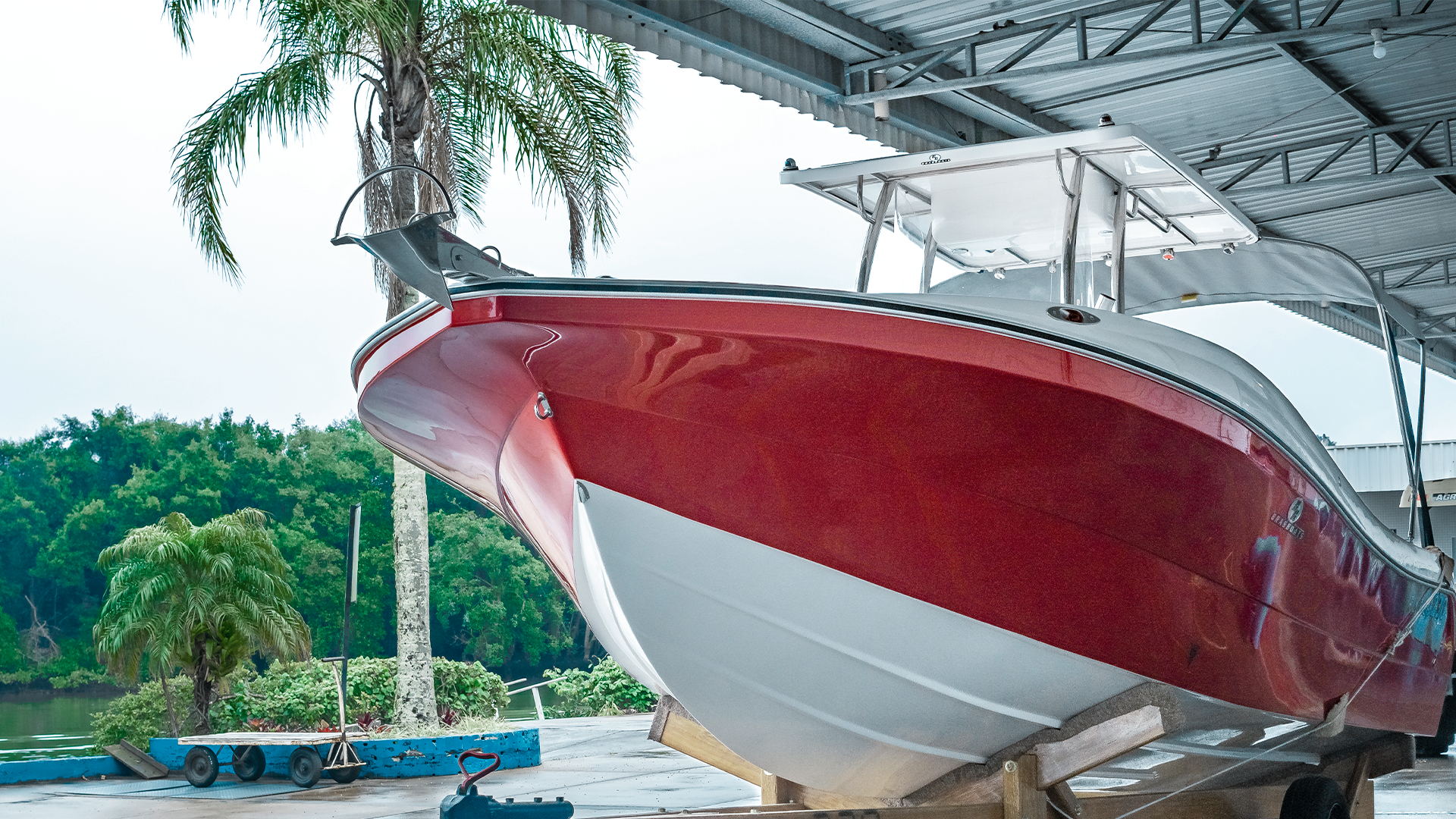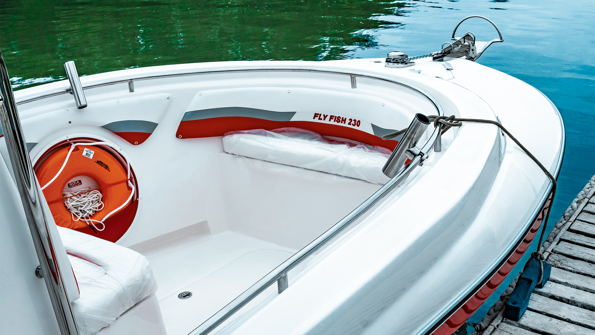Pintura do casco e convés em gel coat na cor branca;
